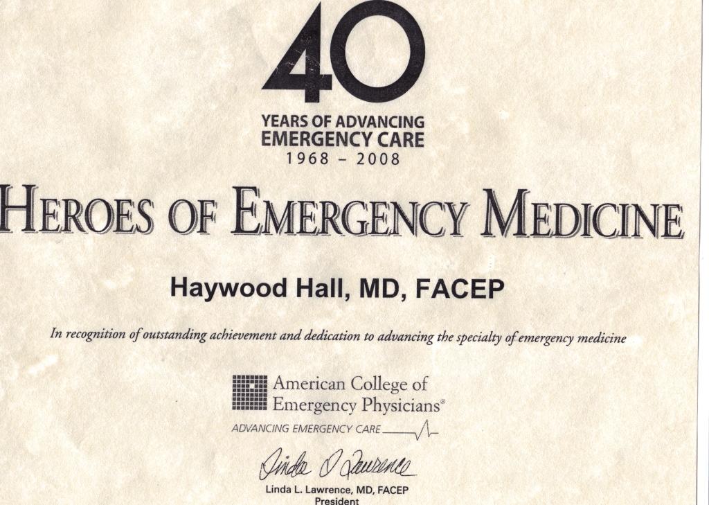 - American College of Emergency Physician's "Hero of Emergency Medicine"
