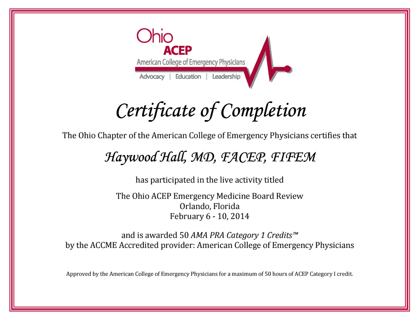 - Fellow of the American College of Emergency Medicine (FACEP)