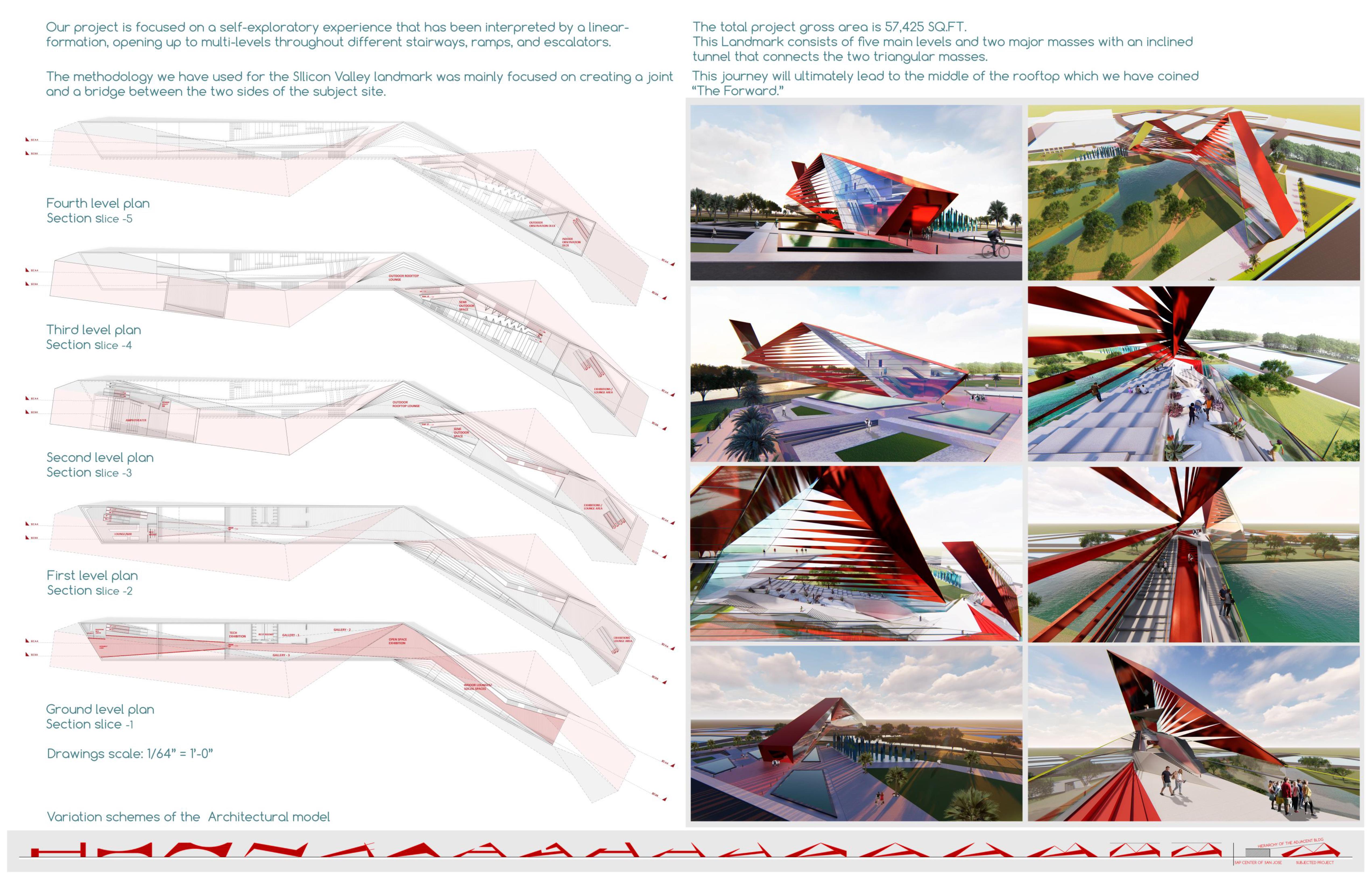 One major aspect was to reduce the noise that’s coming from the airport nearby, the highway on the east side, and the SAP Center of San Jose city on the west by creating acoustic noise panels throughout the pattern that are located in the two major pyramids, to work as noise reduction panels and provide the necessary shading for all the lower levels.