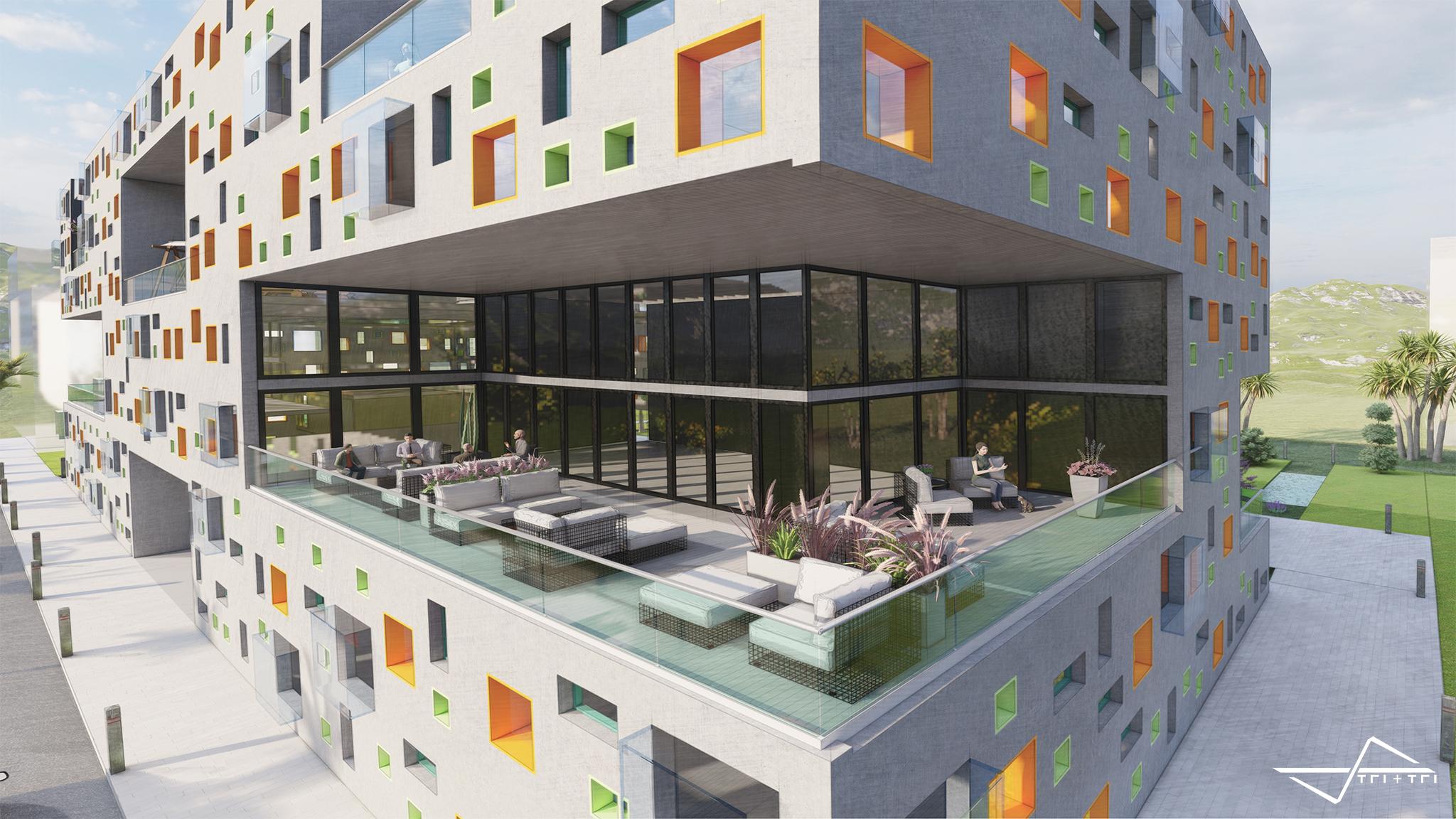 The concept: The idea behind this project is to create an interactive social space that brings the residents together with respect to everyone's privacy and their social needs. These units have a different layout from regular one-story units with the shared open landscape space to loft-style units with their own private space.