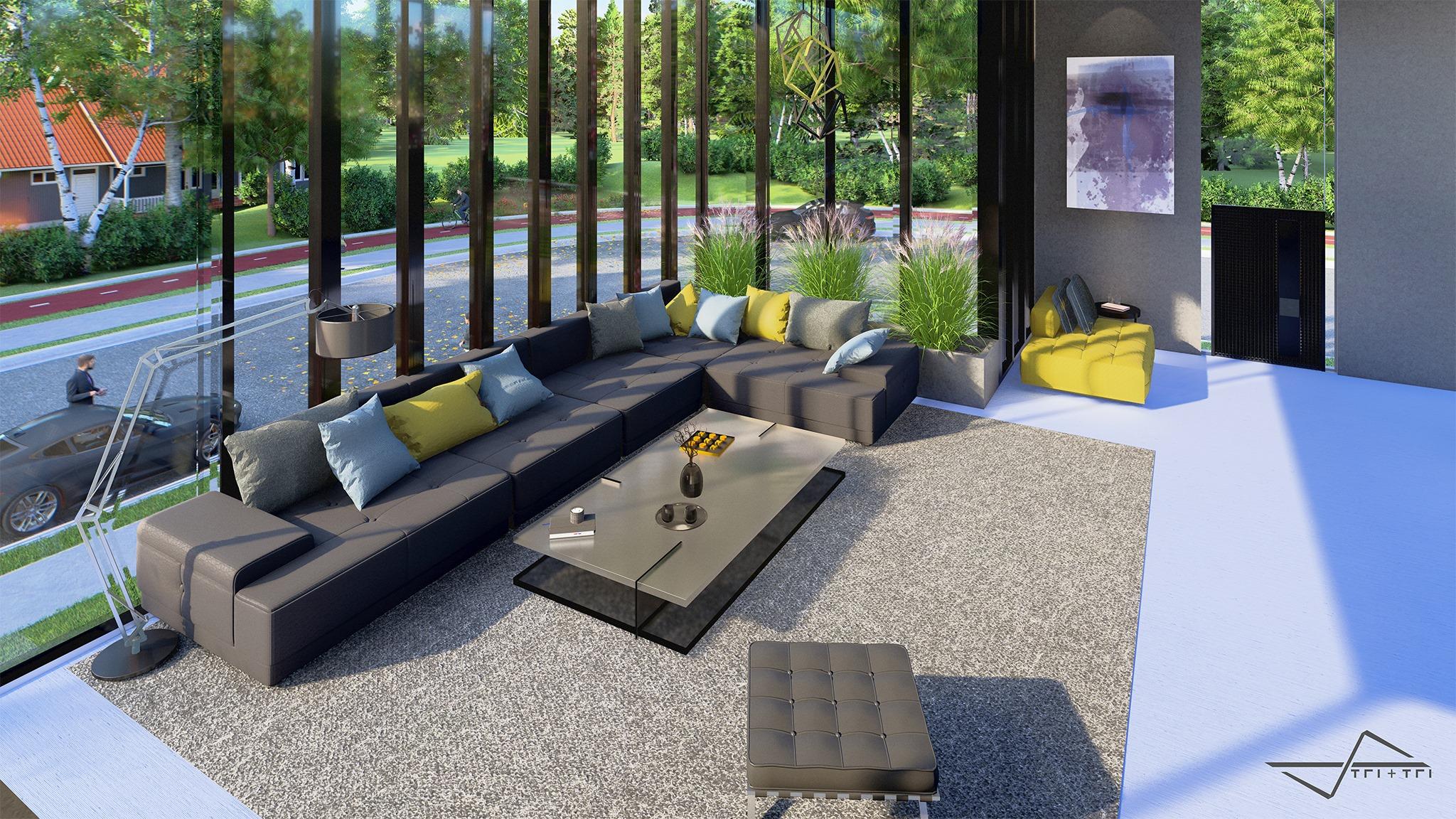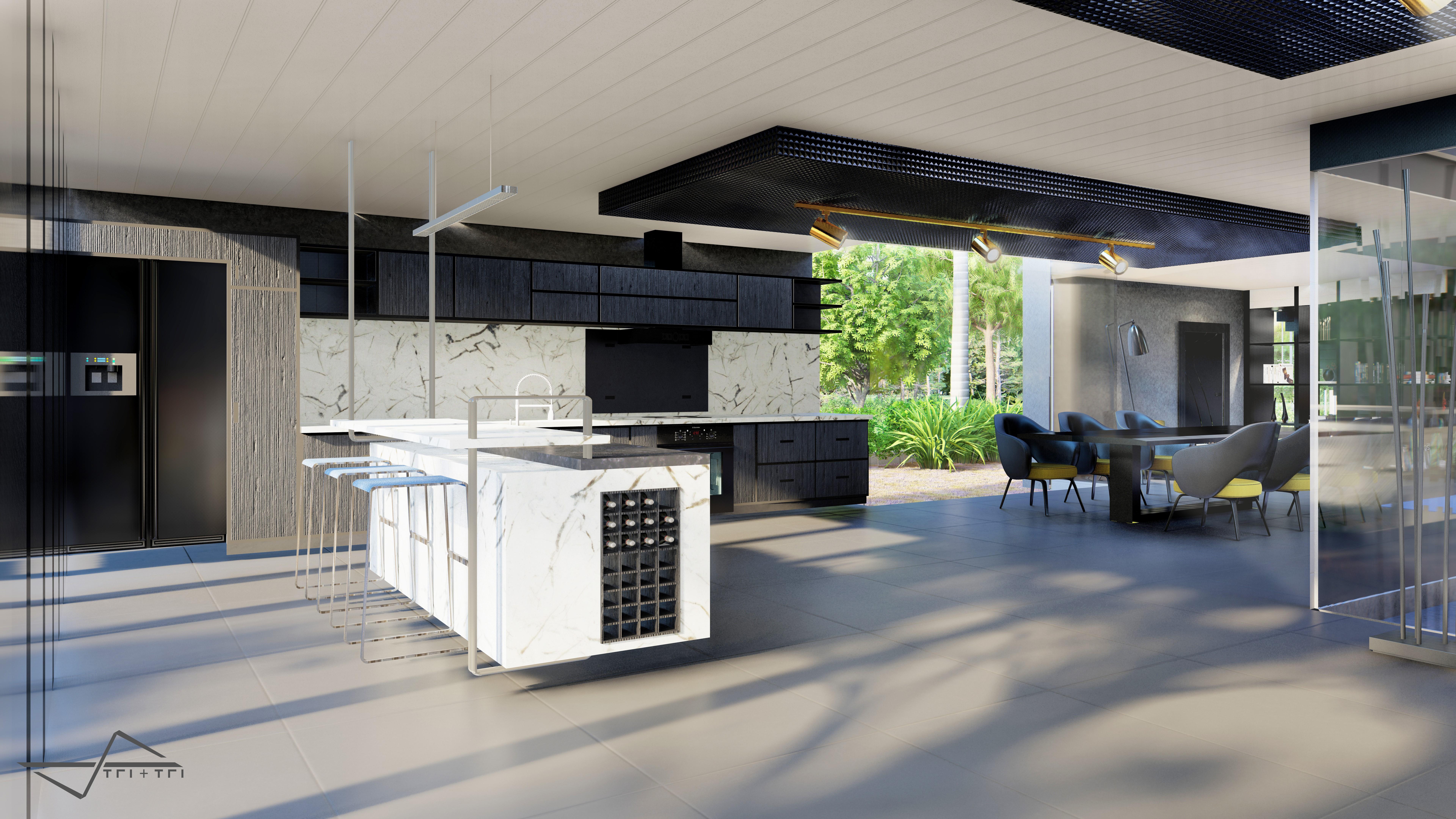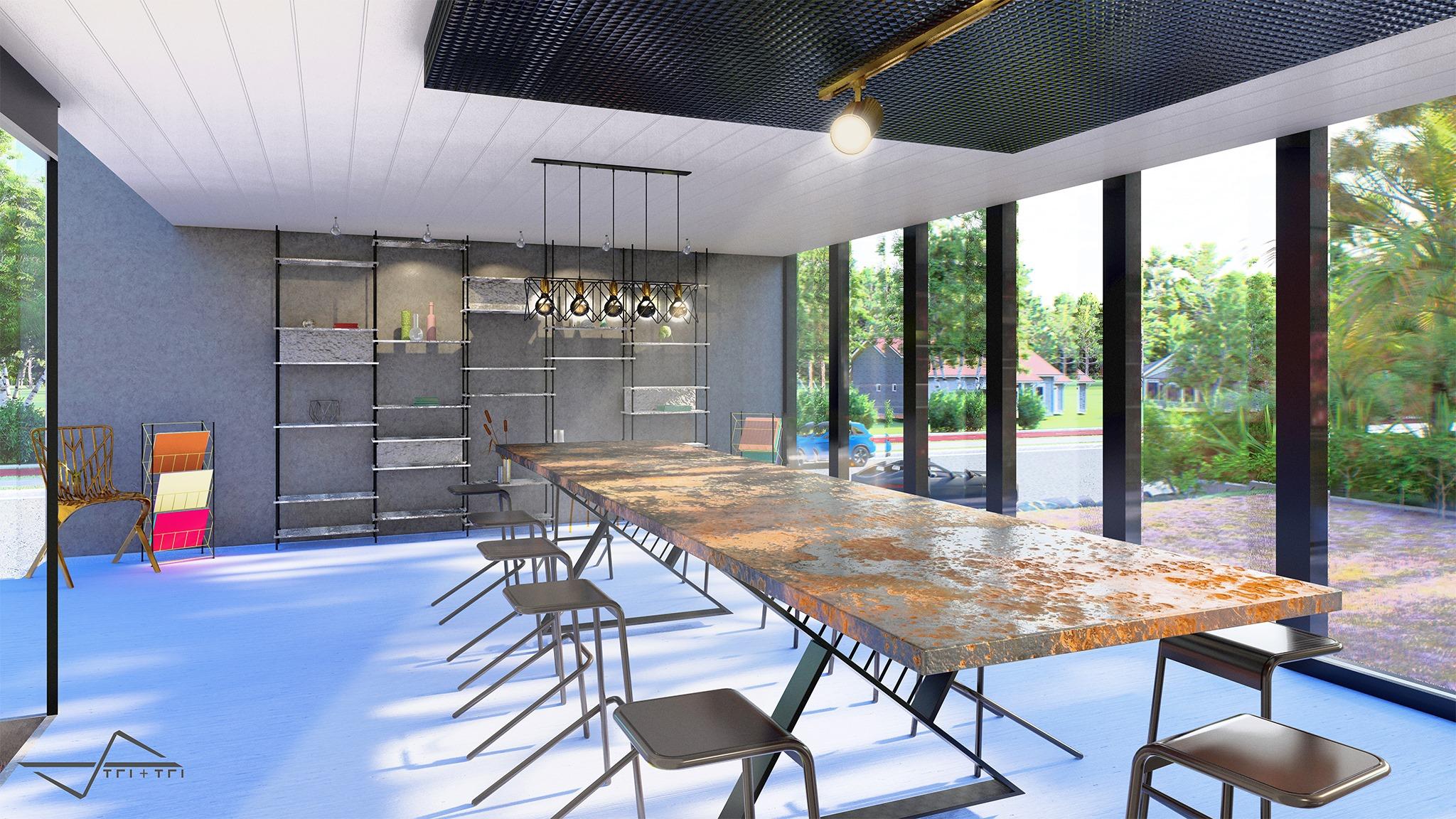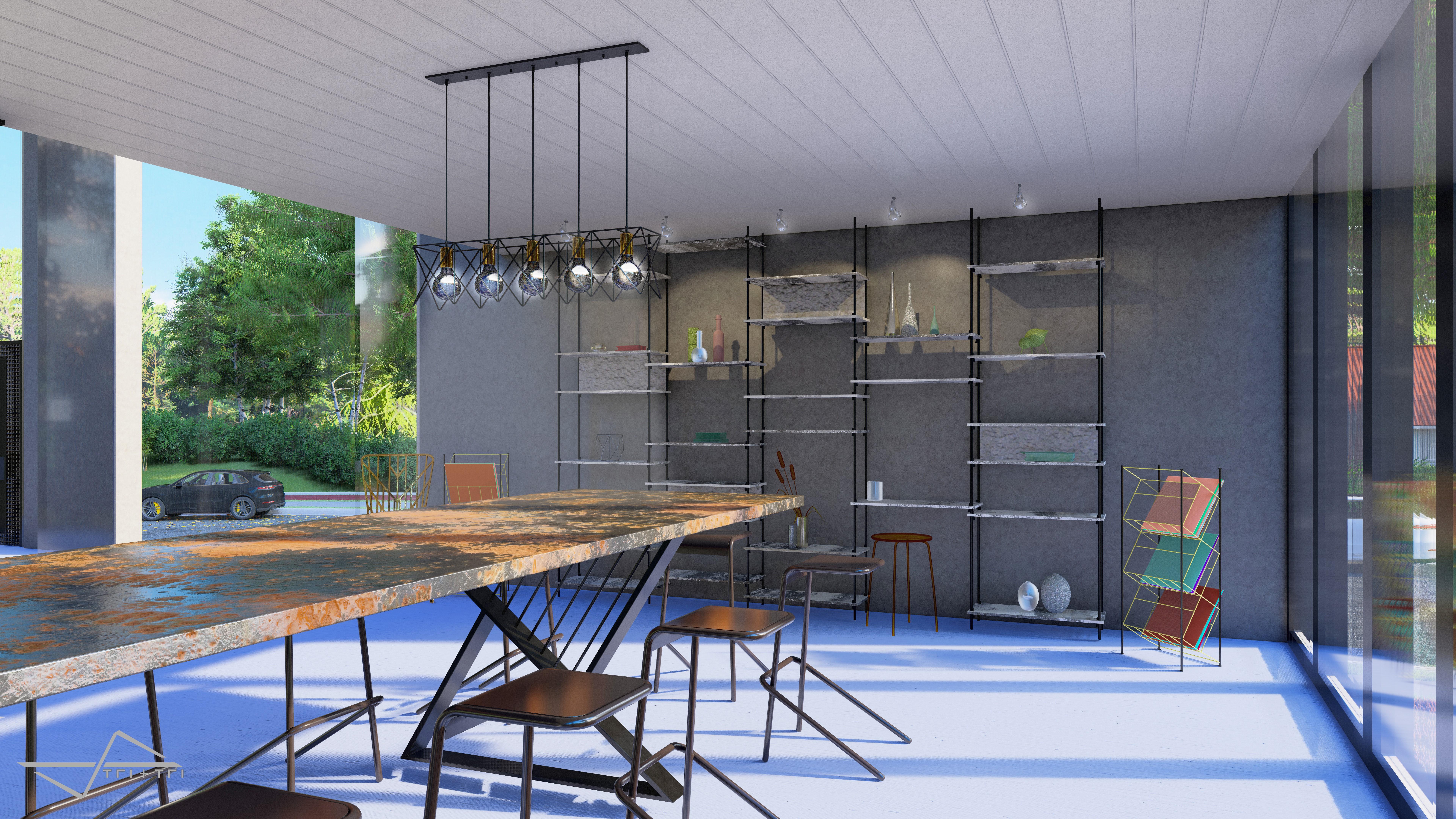 The concept: The conceptual design idea was to create an open concept floor and indoor landscape that meets luxurious and modern style with an industrial appearance that matches that respond to the owner's personality and requirements.